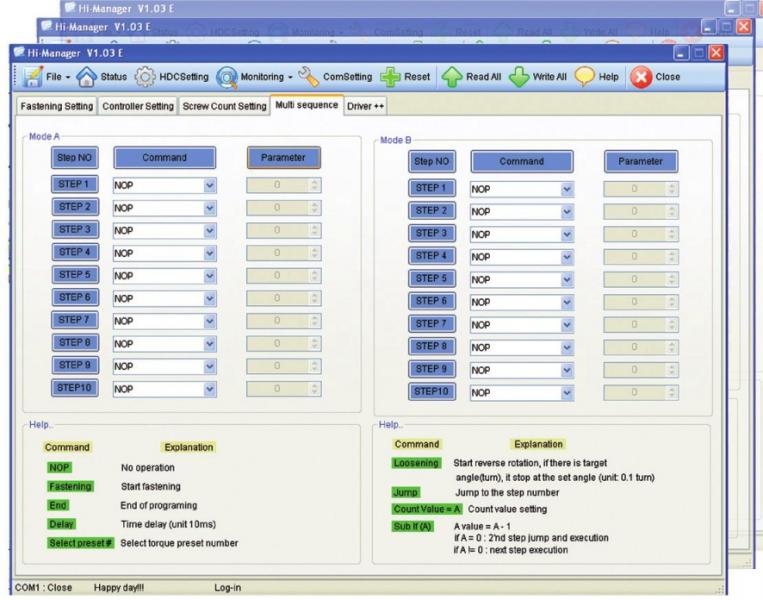 | 12 | Fastening quality control | OK/NG monitoring of screw fastening by preset pattern of angles, times | |
